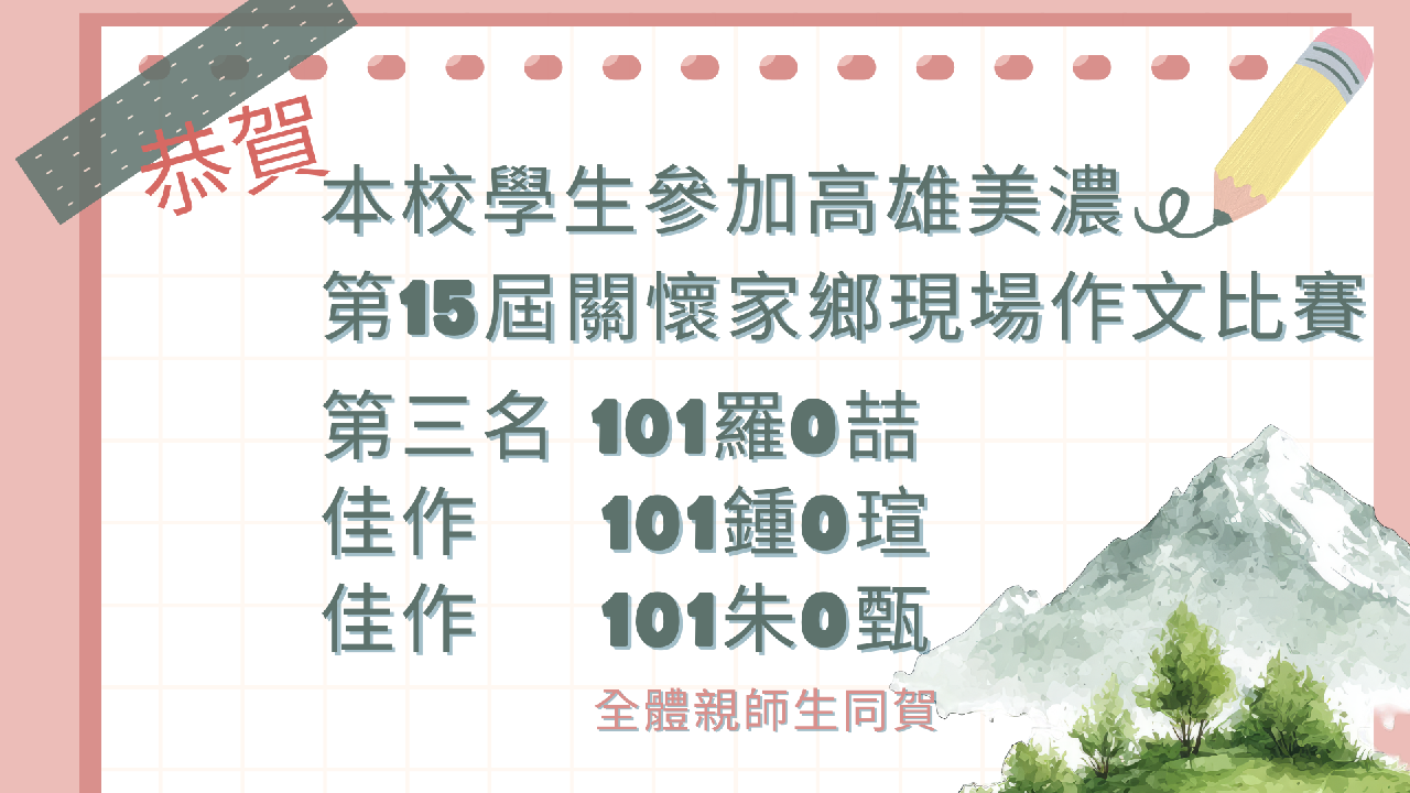 教務處:113年度美濃區鄉土情懷作文比賽獲 ...